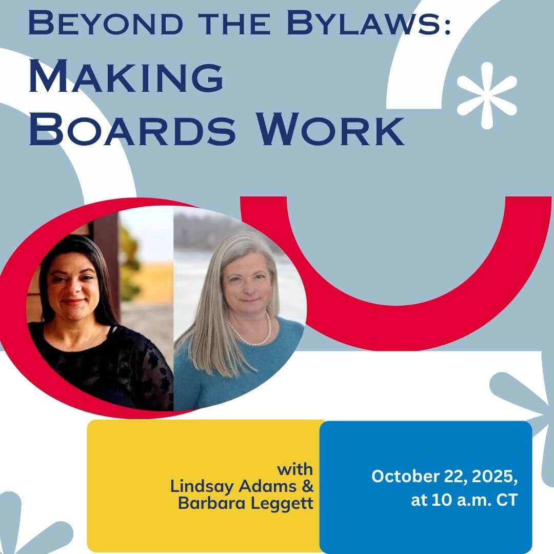 Strong bylaws and solid policies are essential for a well-run nonprofit board—but great boards also thrive on healthy, positive group dynamics. Nonprofit board members are extraordinary people, they’re driven to make a difference, give back, and create positive change. This webinar will help you harness those strengths while tackling real-world challenges to help your board lead effectively.