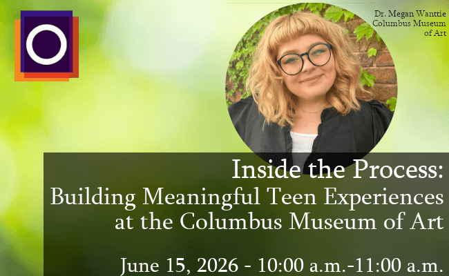 Join Dr. Megan Wanttie for a behind-the-scenes look at how the Columbus Museum of Art (CMA) has worked to create programs that genuinely connect with teens. Dr. Wanttie will share how the CMA anchors their programs in collections and special exhibitions, how they partner with teens and community partners, and how they ground their programs in research practices that test, fine-tune, and evolve programs to make sure they feel relevant and welcoming.