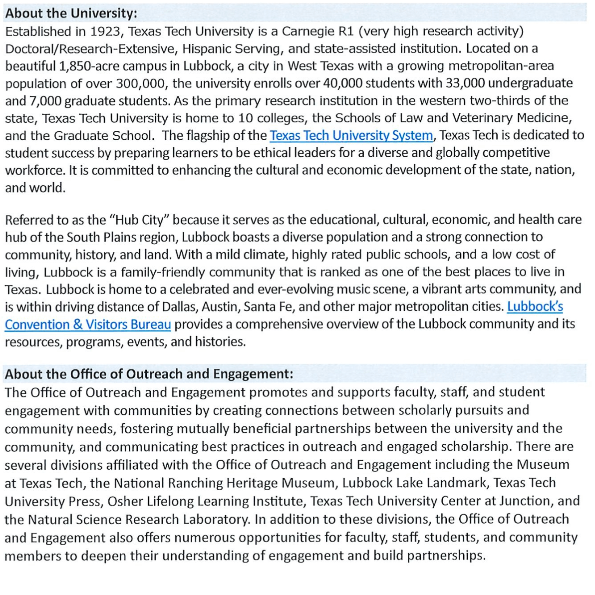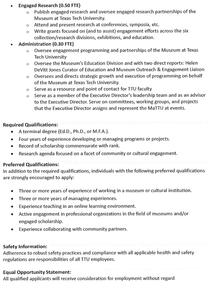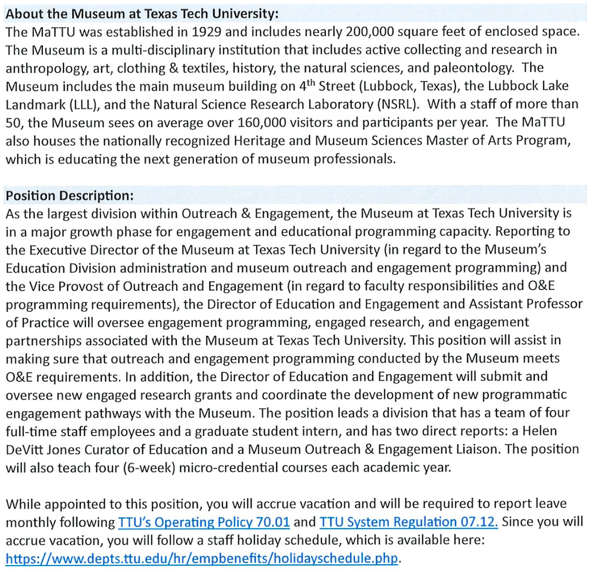 Director of Education & Engagement and Assistant/Associate Professor of Practice | Lubbock, TX
