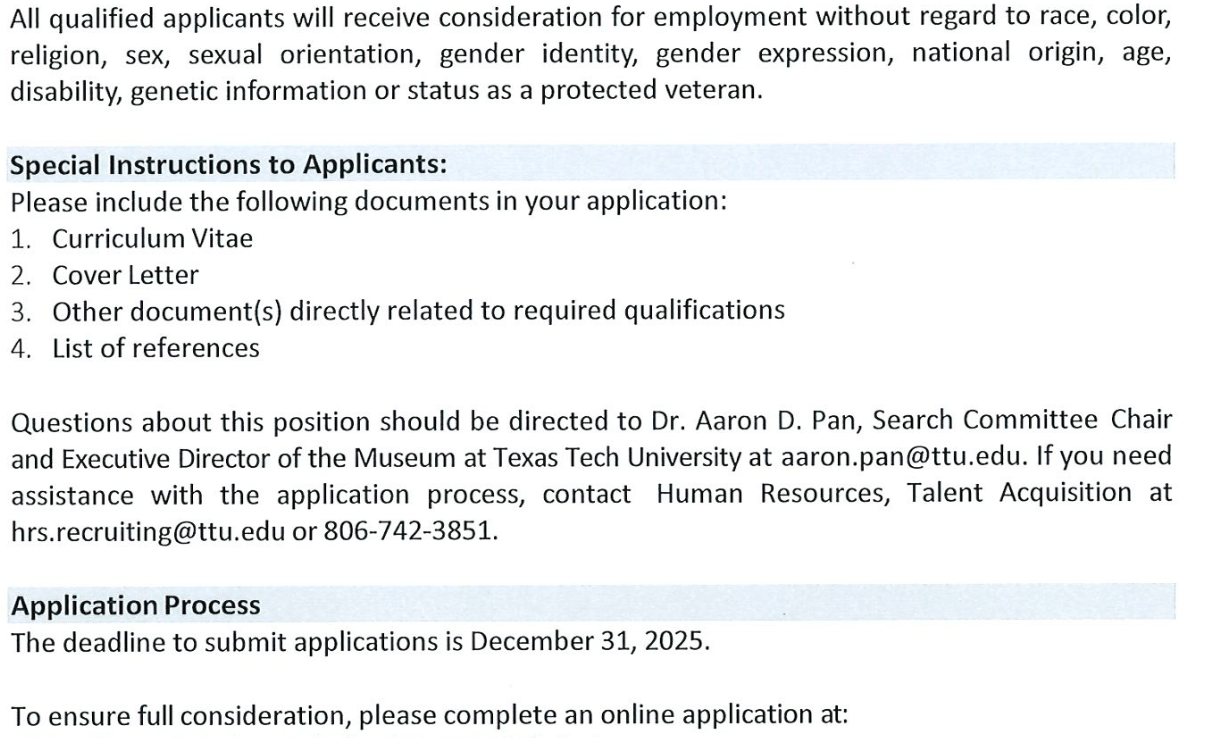 https://www.depts.ttu.edu/hr/workattexastech/ Job Id: 42876BR